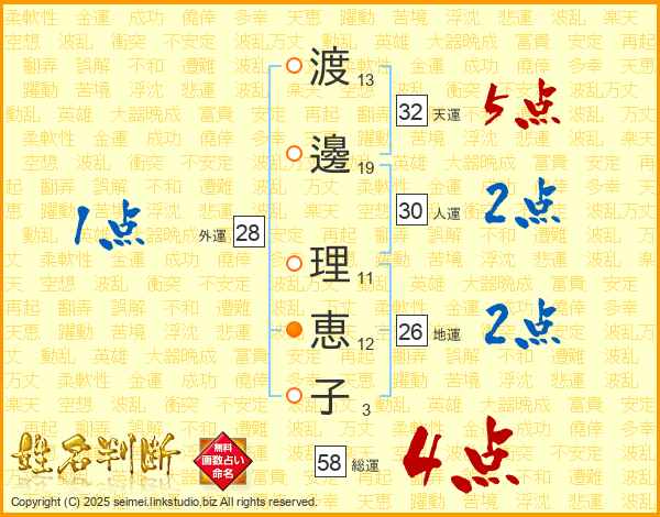 渡(13画)邊(19画) 理(11画)恵(12画)子(3画)