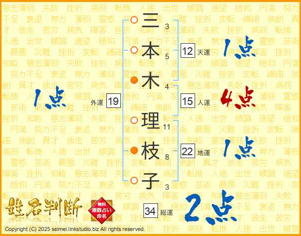 三(3画)本(5画)木(4画) 理(11画)枝(8画)子(3画)