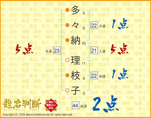 多(6画)々(6画)納(10画) 理(11画)枝(8画)子(3画)