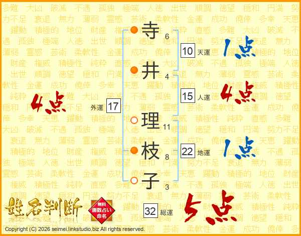 寺井理枝子さんの総運は32画の5点!