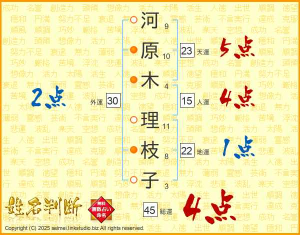 河原木理枝子さんの総運は45画の4点!