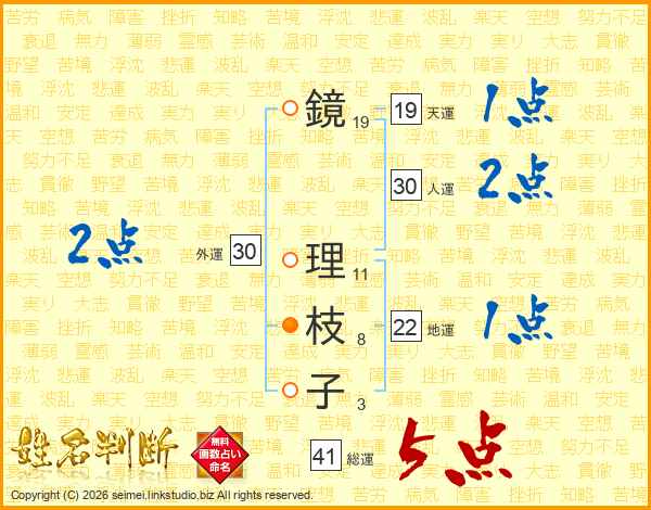 鏡理枝子さんの総運は41画の5点!