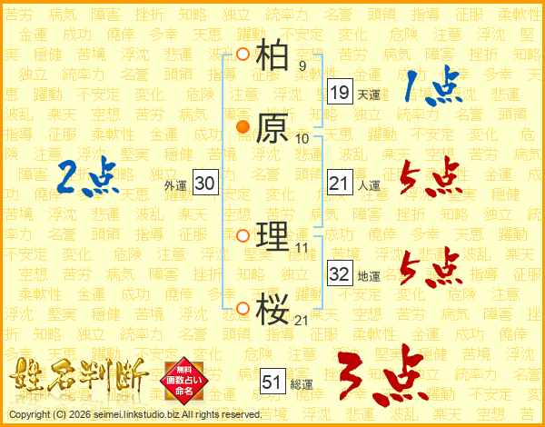 柏原理桜さんの総運は51画の3点!