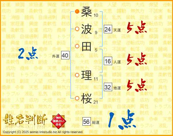 桑(10画)波(9画)田(5画) 理(11画)桜(21画)