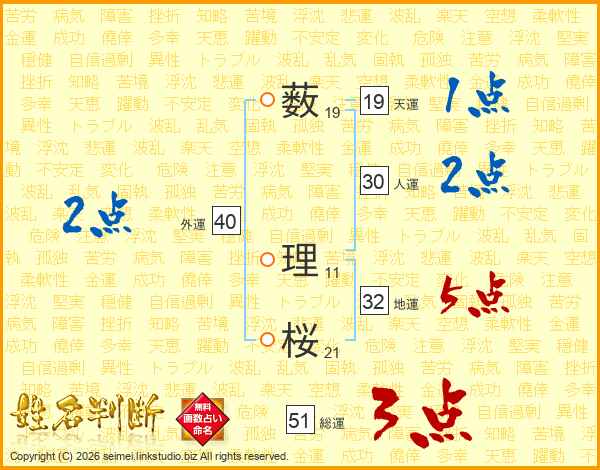 薮理桜さんの総運は51画の3点!
