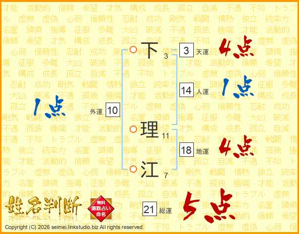 下理江さんの総運は21画の5点!