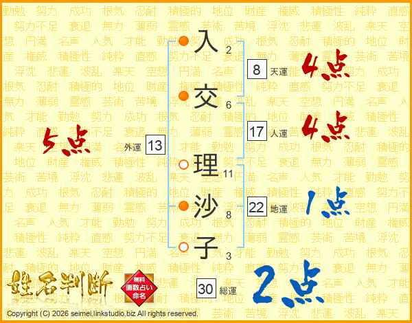 入交理沙子さんの総運は30画の2点!