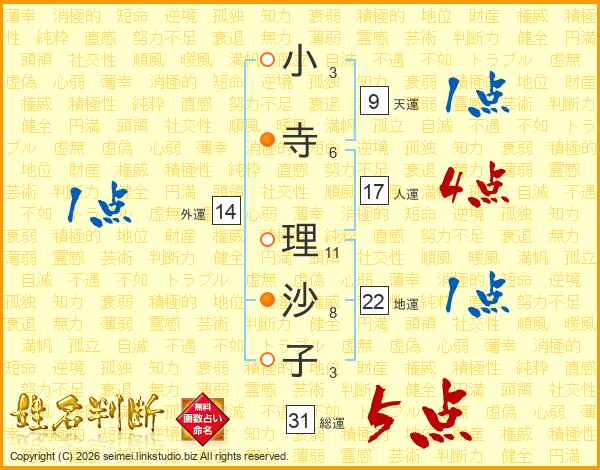 小寺理沙子さんの総運は31画の5点!