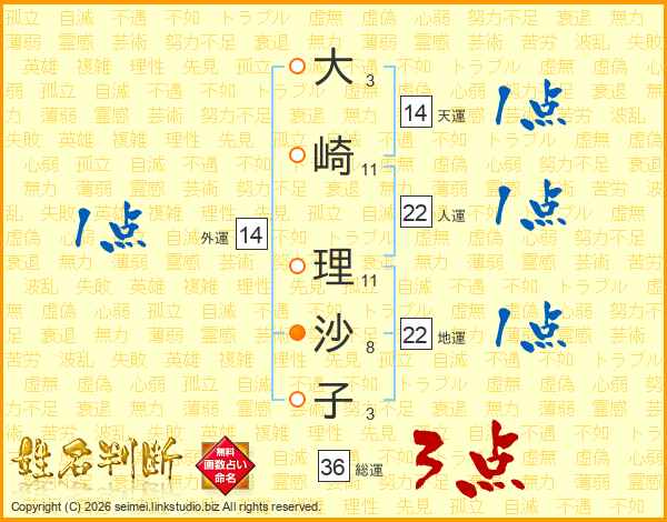 大崎理沙子さんの総運は36画の3点!