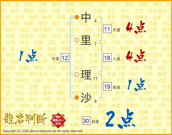 中里理沙さんの天運は11画の4点!