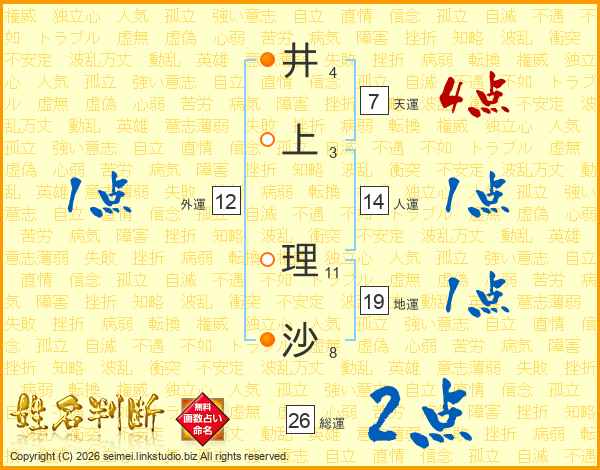 井上理沙さんの総運は26画の2点!