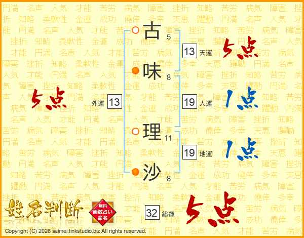 古味理沙さんの総運は32画の5点!