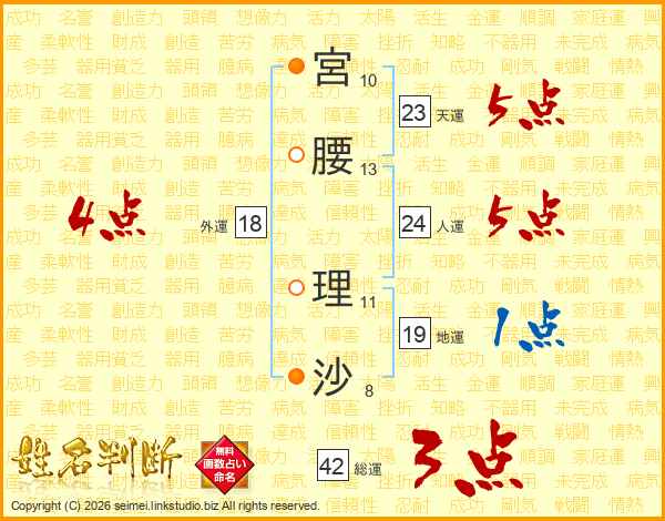 宮(10画)腰(13画) 理(11画)沙(8画)