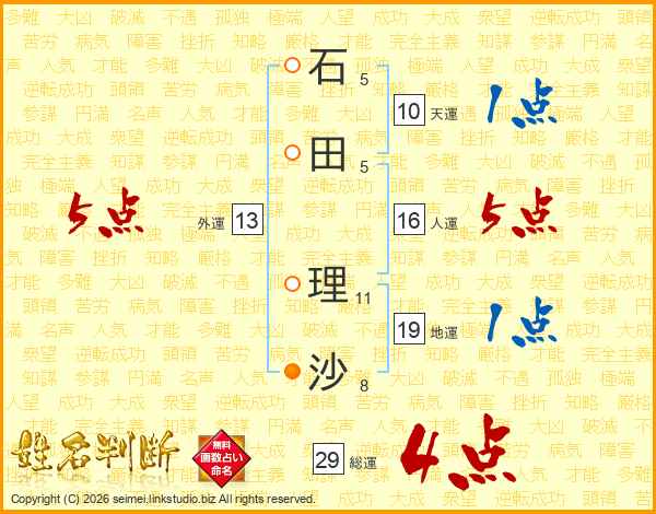 石田理沙さんの総運は29画の4点!
