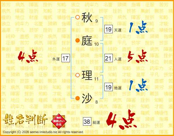 秋庭理沙さんの総運は38画の4点!