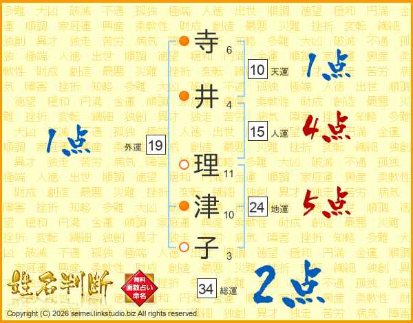 寺(6画)井(4画) 理(11画)津(10画)子(3画)