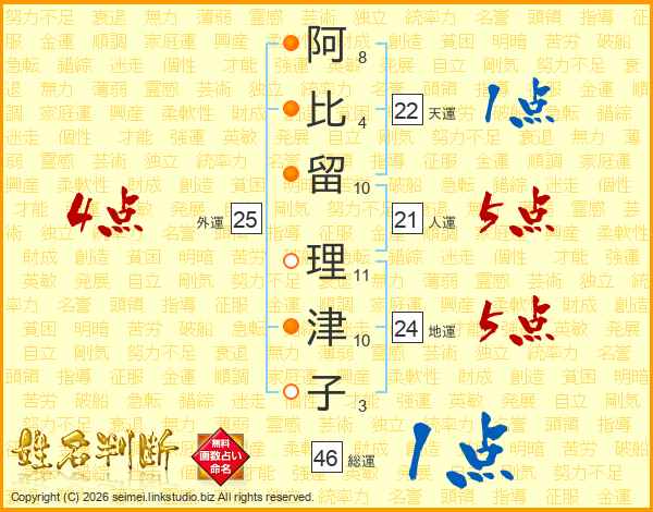 阿比留理津子さんの総運は46画の1点!