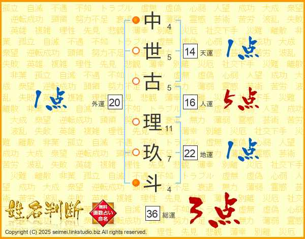 中世古理玖斗さんの天運は14画の1点!