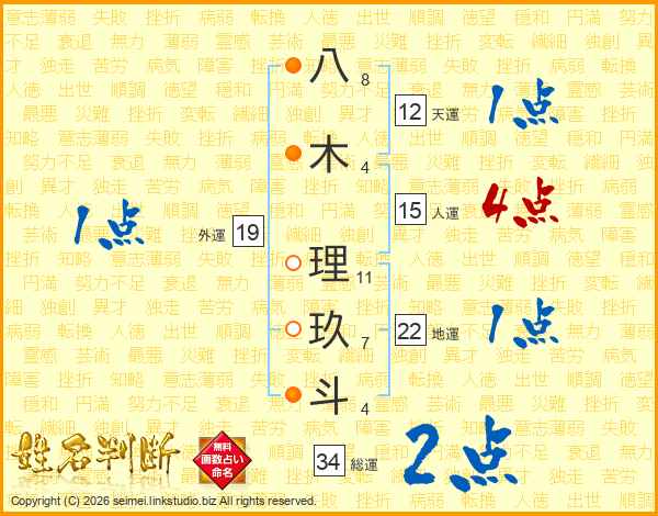 八(8画)木(4画) 理(11画)玖(7画)斗(4画)