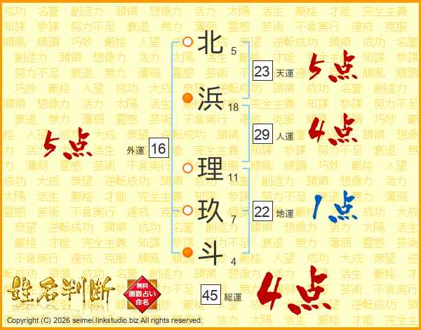 北(5画)浜(18画) 理(11画)玖(7画)斗(4画)