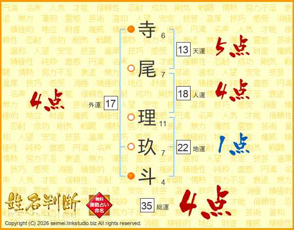 寺尾理玖斗さんの総運は35画の4点!
