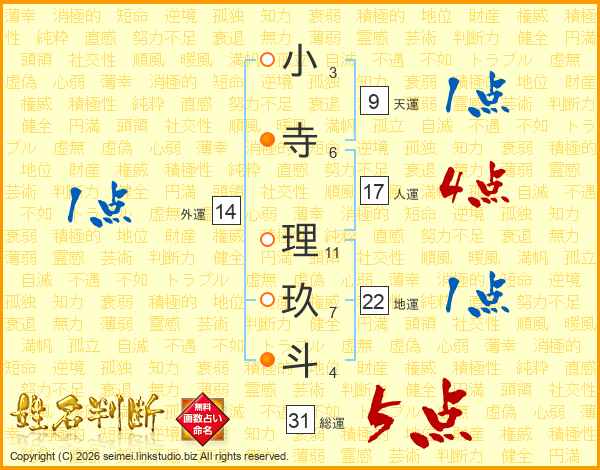小寺理玖斗さんの総運は31画の5点!