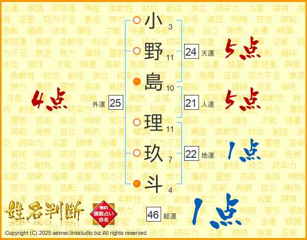 小野島理玖斗さんの人運は21画の5点!