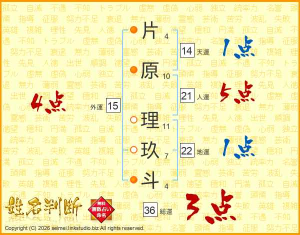 片(4画)原(10画) 理(11画)玖(7画)斗(4画)