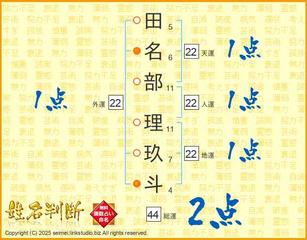 田名部理玖斗さんの地運は22画の1点!