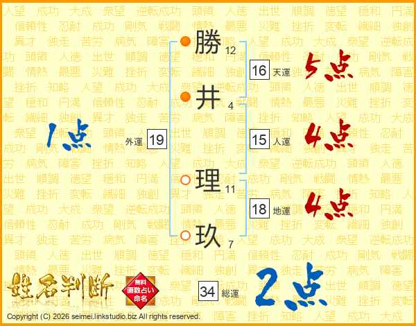 勝(12画)井(4画) 理(11画)玖(7画)