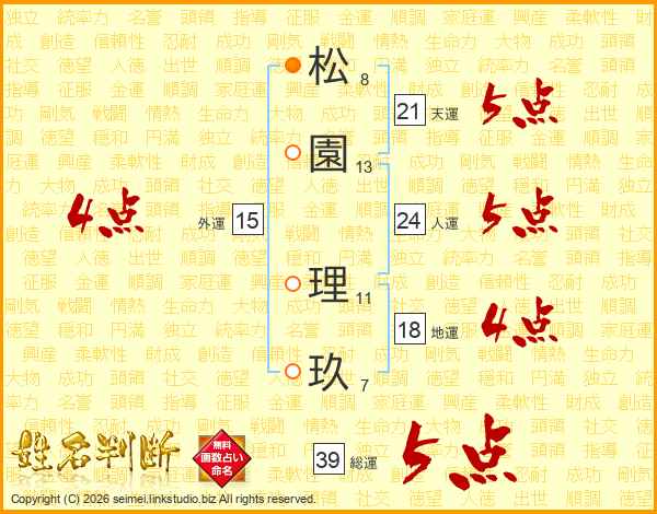 松園理玖さんの総運は39画の5点!