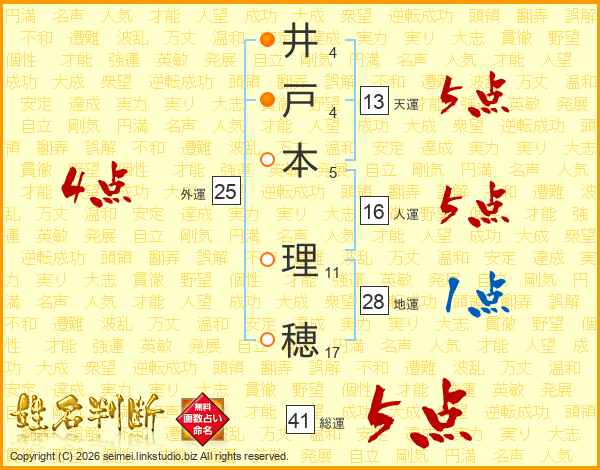 井(4画)戸(4画)本(5画) 理(11画)穂(17画)