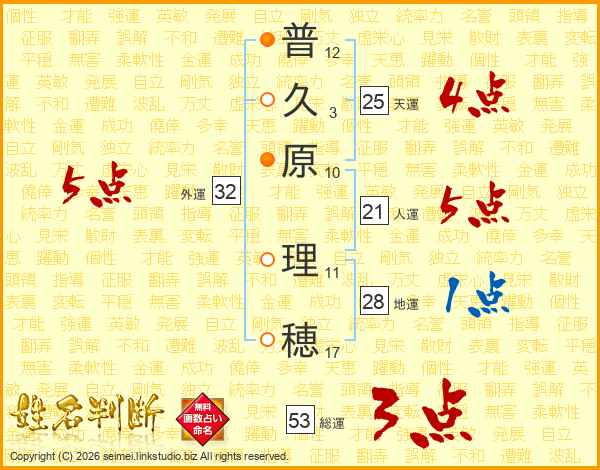 普久原理穂さんの総運は53画の3点!