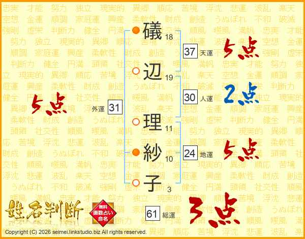 礒辺理紗子さんの天運は37画の5点!