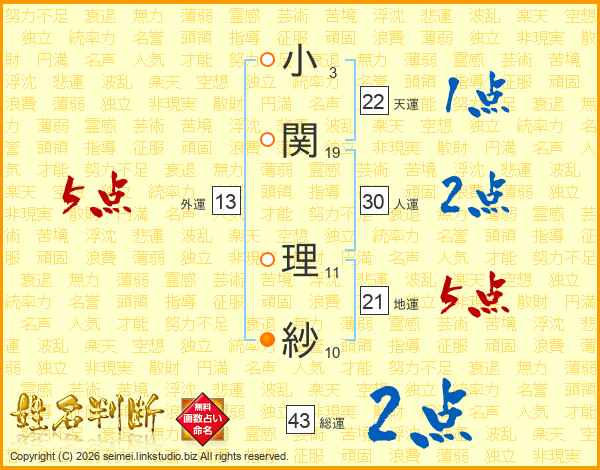 小関理紗さんの総運は43画の2点!