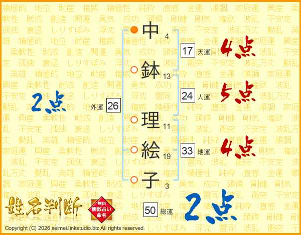 中鉢理絵子さんの天運は17画の4点!