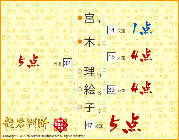 宮木理絵子さんの総運は47画の5点!