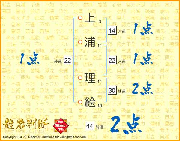上浦理絵さんの総運は44画の2点!