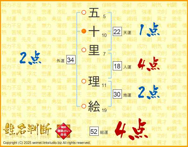 五十里理絵さんの総運は52画の4点!