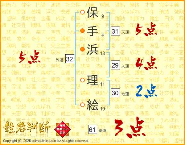 保(9画)手(4画)浜(18画) 理(11画)絵(19画)