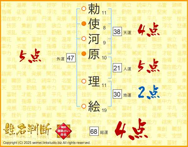 勅使河原理絵さんの総運は68画の4点!