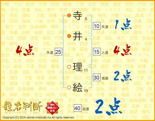 寺井理絵さんの地運は30画の2点!