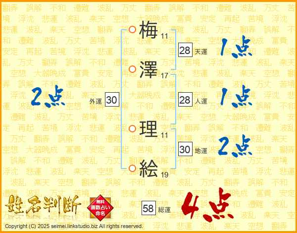 梅澤理絵さんの総運は58画の4点!