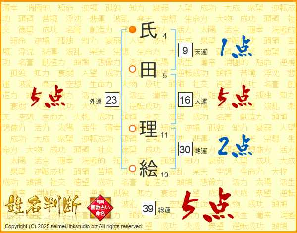 氏田理絵さんの総運は39画の5点!