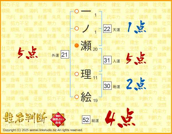 一ノ瀬理絵さんの総運は52画の4点!