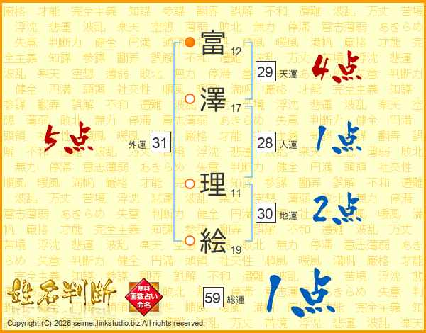 富(12画)澤(17画) 理(11画)絵(19画)