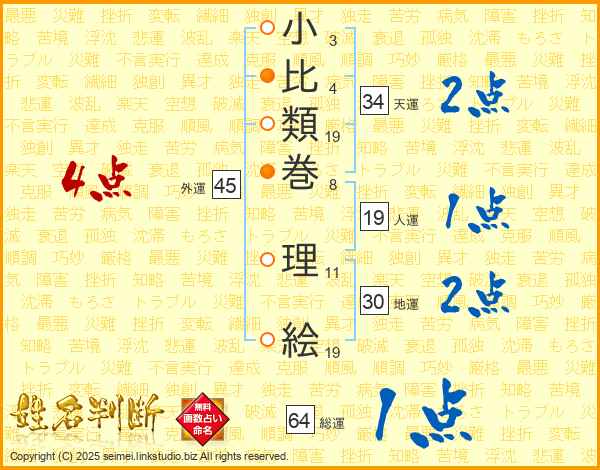 小(3画)比(4画)類(19画)巻(8画) 理(11画)絵(19画)