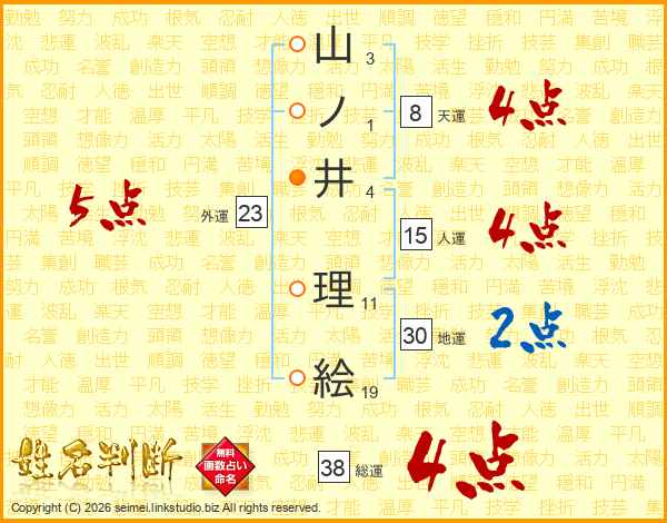 山ノ井理絵さんの総運は38画の4点!
