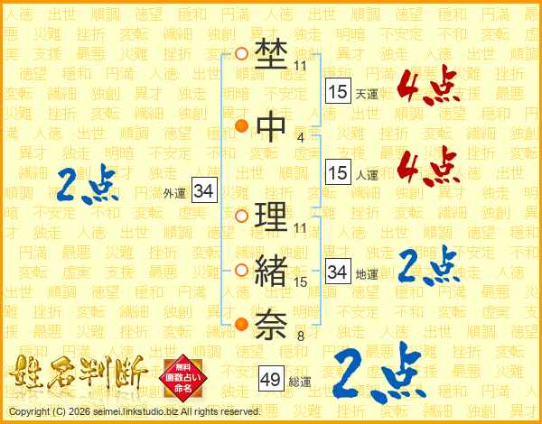 埜中理緒奈さんの総運は49画の2点!
