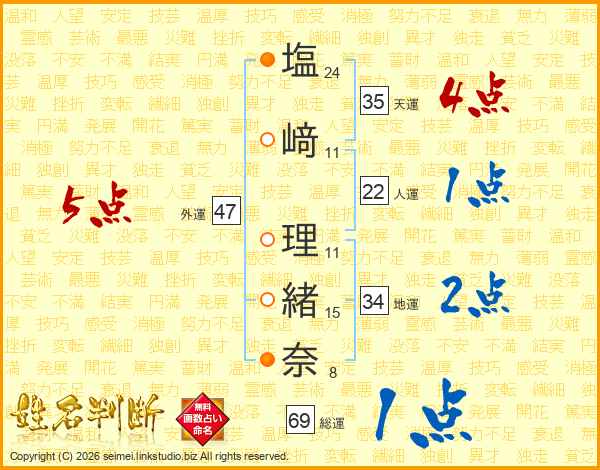 塩﨑理緒奈さんの外運は47画の5点!